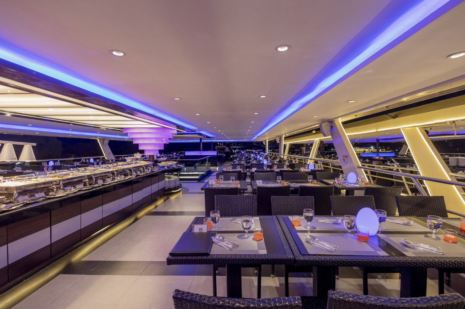 3. 흡연구역은 실외 뱃머리 부근에 위치해 있으며, 흡연 구역은 식사 좌석이 아닙니다.