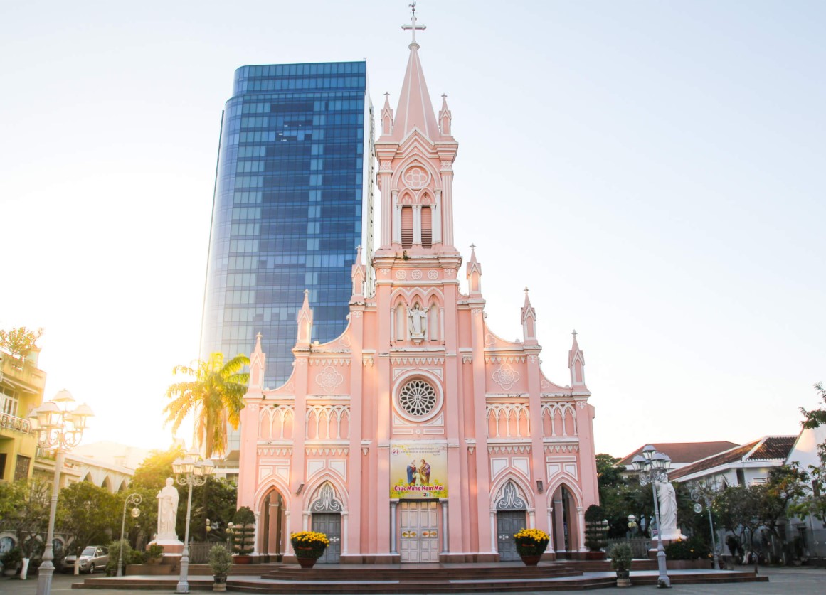분홍빛 외관이 시선을 사로잡는 다낭의 랜드마크, 핑크성당!