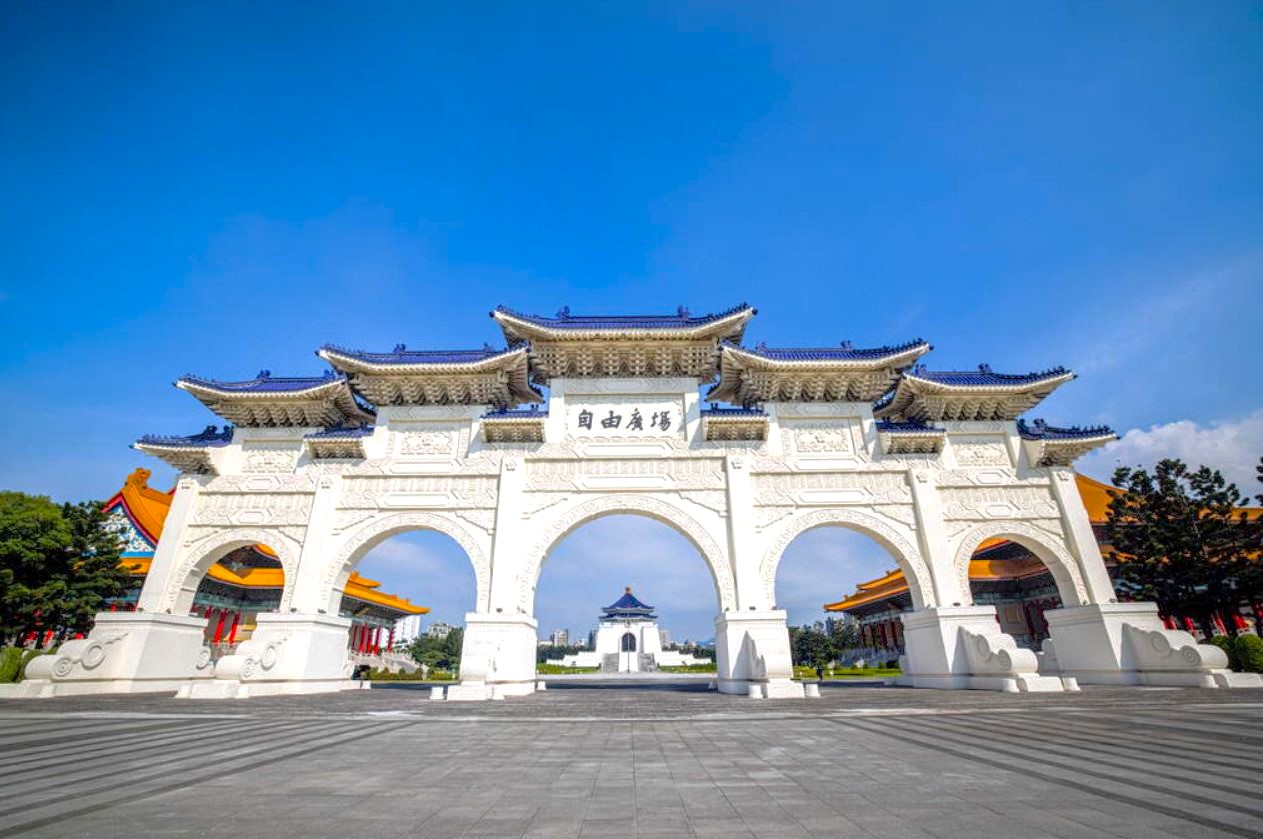 푸른 지붕과 흰색 외관이 어우러진 건축물은 타이베이를 대표하는 랜드마크입니다.